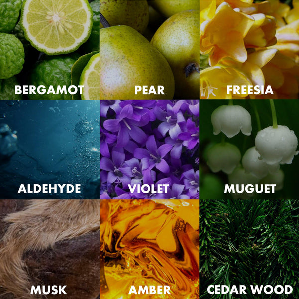 ふわっと香るフリージアのフローラルノートの中に、甘くフレッシュな洋ナシと、スッキリとした柑橘のベルガモットがあなたを惹き込みます。